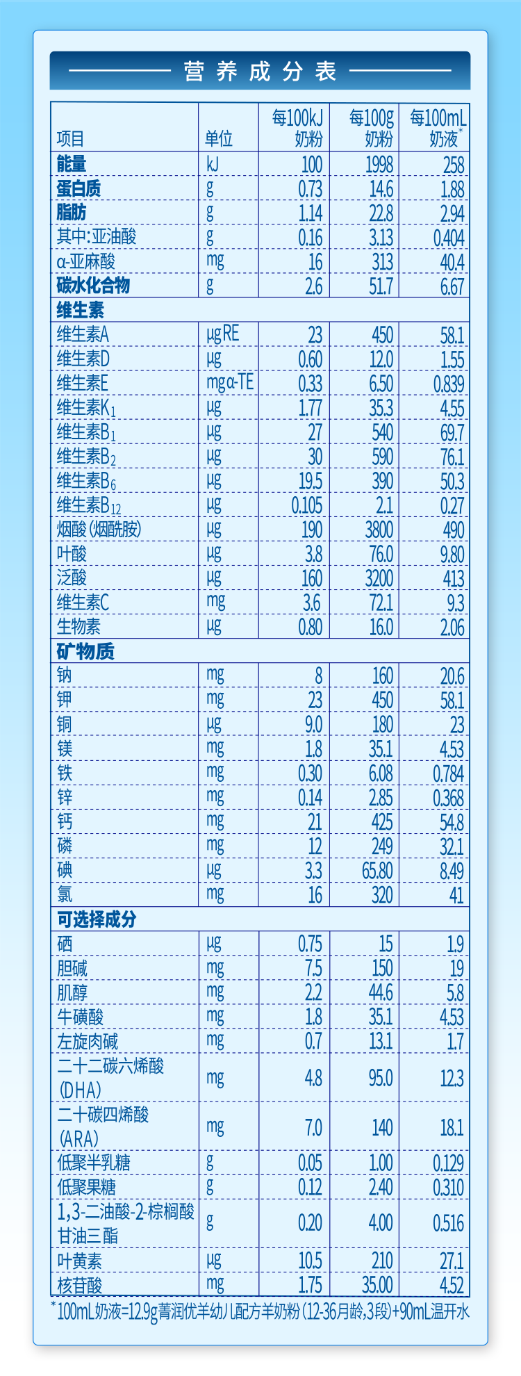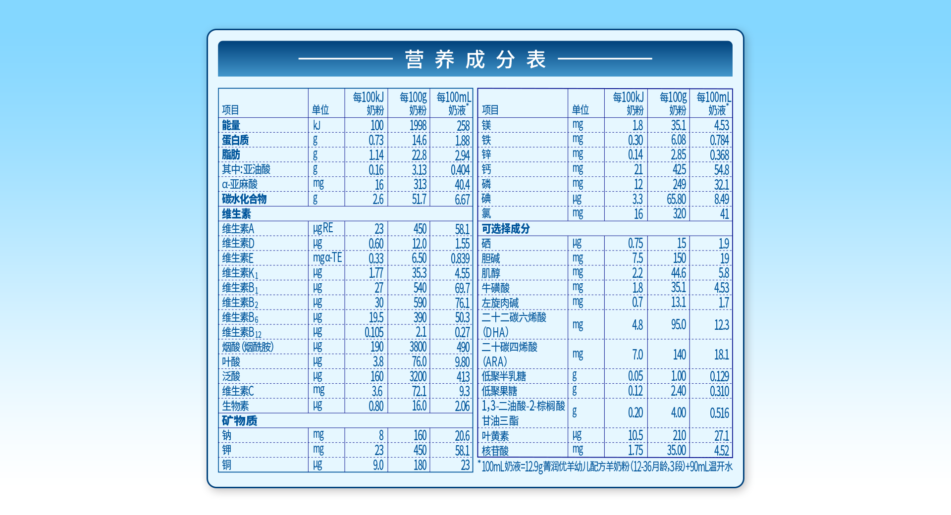 營養(yǎng)成分表