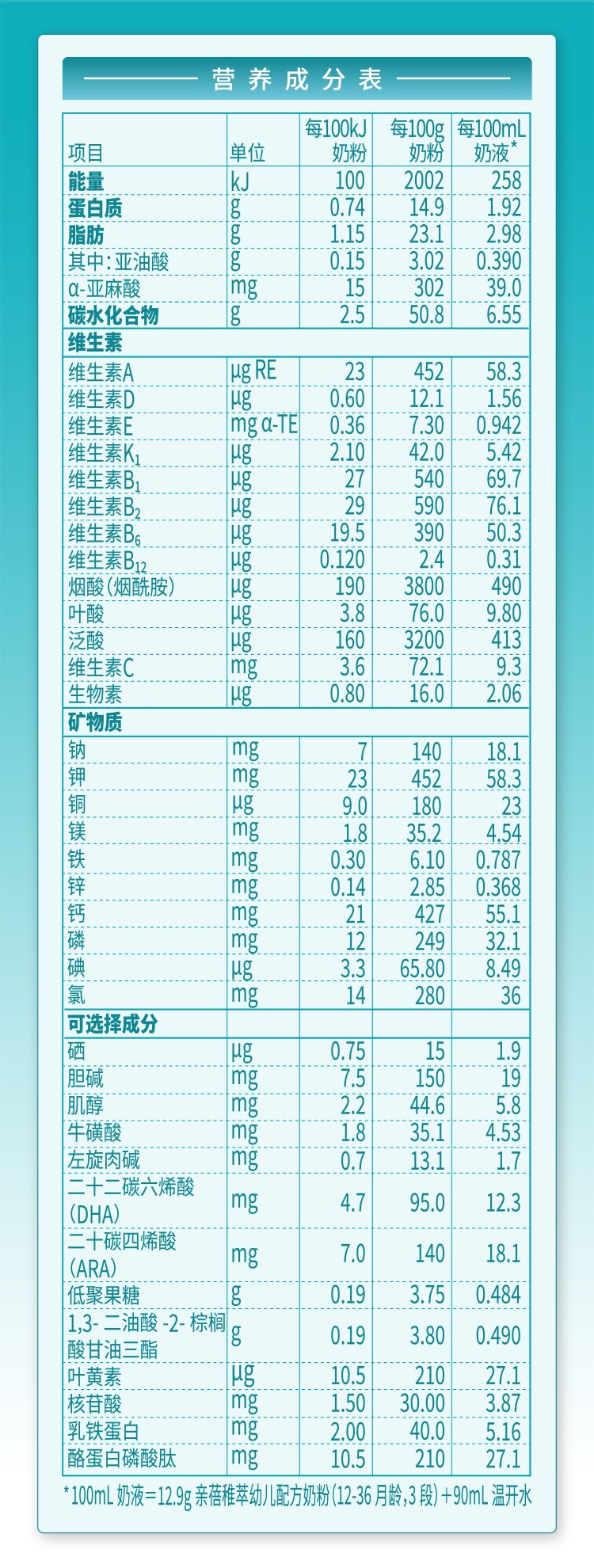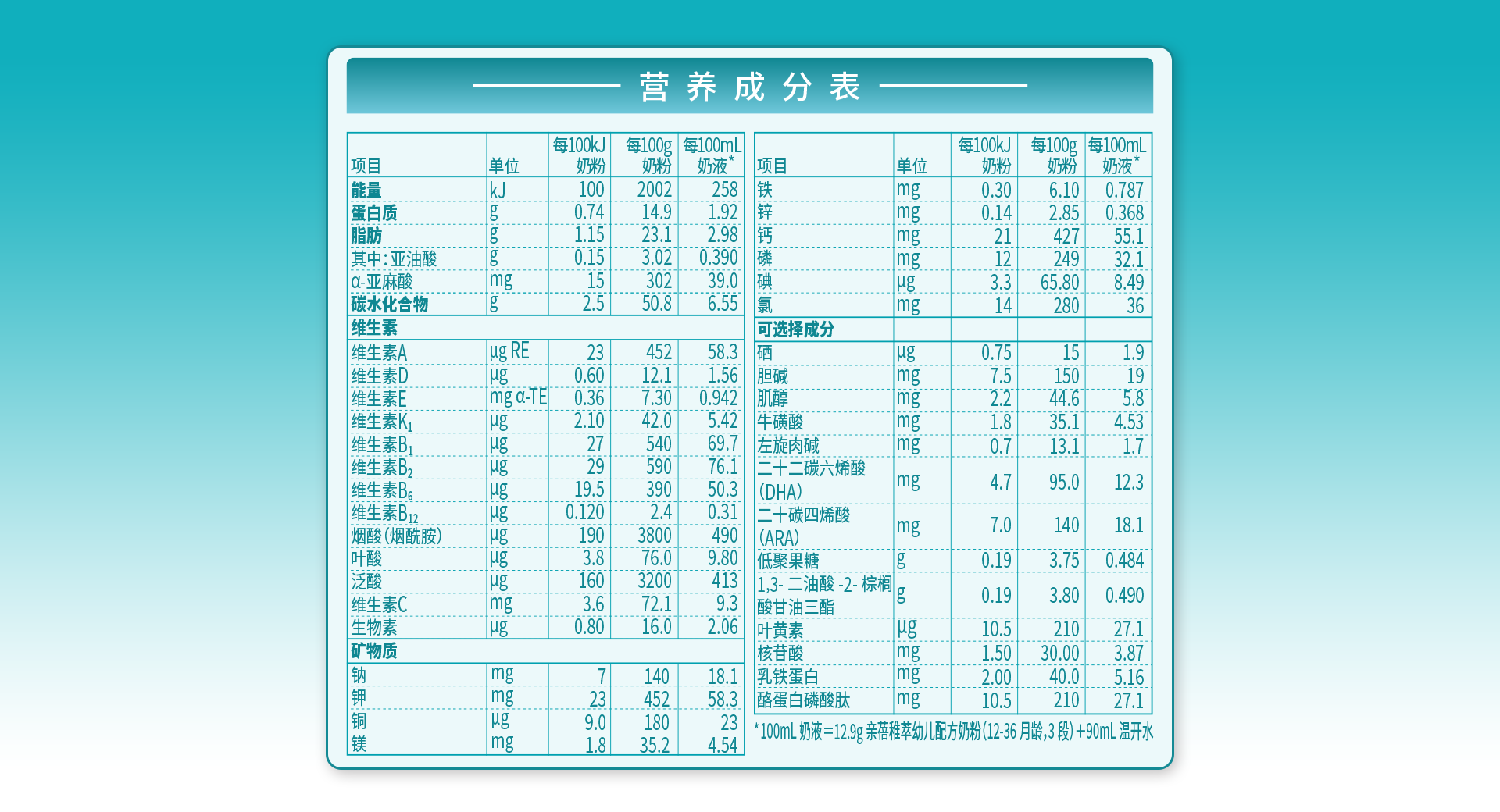 營養(yǎng)成分表