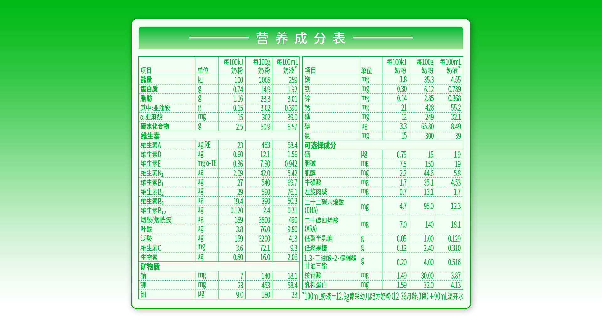 營養(yǎng)成分表